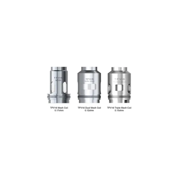 TFV16 Single Mesh Coils: Resistance of 0.17 ohm Wattage Recommendation for a Single Mesh Coil: 120W Dual Mesh TFV16 Coils: