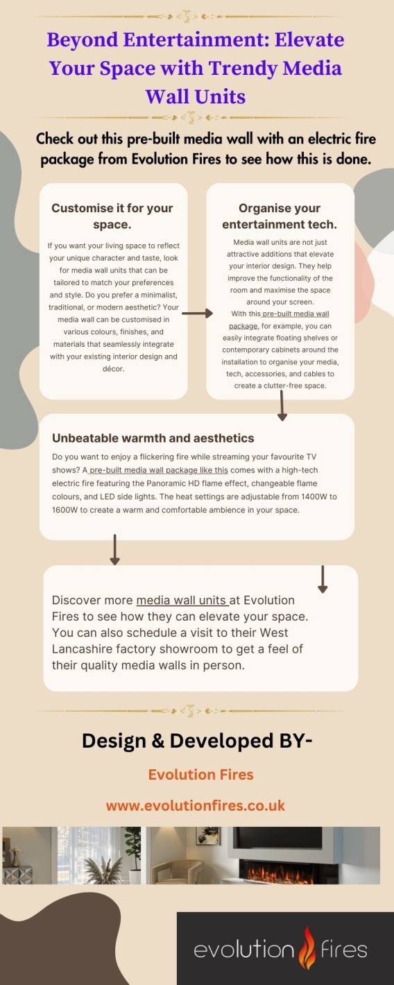 Check out this pre-built media wall with an electric fire package from Evolution Fires to see how this is done. A pre-packaged media wall with an electric fire brings functionality and aesthetics to transform your home entertainment experience!