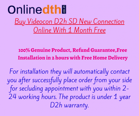Order Online at Onlinedth videocon d2h sd set-top box, For installation they will automatically contact you after successfully place an order from your side for scheduling an appointment with you within 2-24 working hours. The product is under a 1-year D2h warranty.