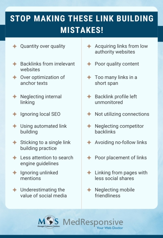 Careless link building could lead to fall in ranking and authority, resulting in less traffic. Hire our digital marketing services for professional link building. https://www.medresponsive.com/services/