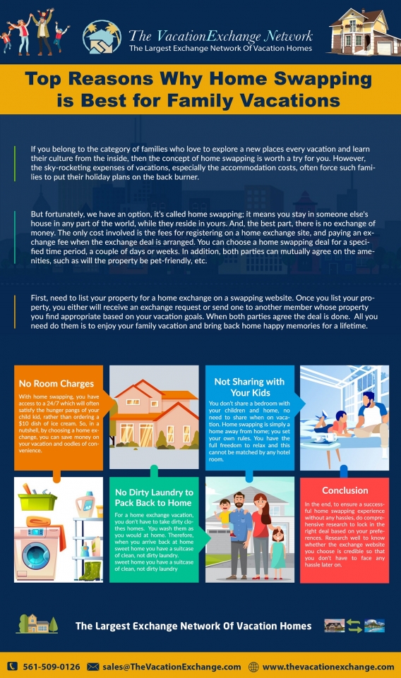 There are a lot of benefits of home exchange. If you want to live in any place with someone or house owner so you can live there. When choosing the home swap option, you don’t need to take a room in a hotel. You will have a complete house exchange to live and enjoy your vacation. The Vacation Exchange Network is popular to provide exchange homes or house swap service. We help us to find the best house by house swapping and housing swap.Why Choose House Exchange for your Vacations? The Vacation Exchange Network offers home exchange or house swap service for your vacations. It's the best option nowadays. Why? When you book a restaurant, you don't get that many facilities. By taking the house exchange service, you can choose the location and time that you like. We will connect to homeowners and get their home swap for a time period. Then you can enjoy your vacation at another person's home by exchange homes. Most of the...