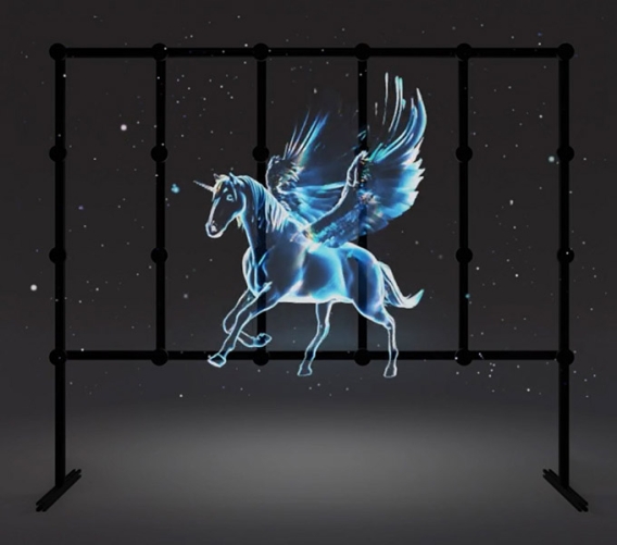 A four blades spinning fan with LED lights shows highest resolution 3D content floating in the air. www.showholo.com ;https://showholo.com/3d-hologram-fan/