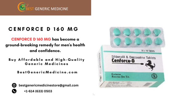 Revolutionize your intimacy with Cenforce D 160 mg, a dynamic blend of sildenafil and dapoxetine that ensures an unforgettable experience. Boost confidence, enhance stamina, and bring back the sizzle to your love life https://bestgenericmedicine.com/product/cenforce-d-160-mg