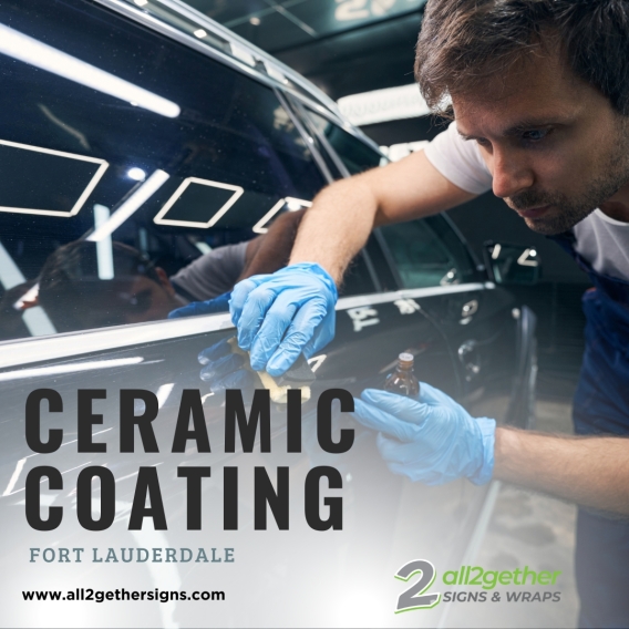 Looking to protect your car’s paint and keep it looking brand new? At All2Gether Signs, we offer top-tier ceramic coating services in Fort Lauderdale that provide long-lasting protection and a showroom shine. Our ceramic coatings create a durable, hydrophobic layer that repels water, dirt, UV rays, and everyday contaminants, making your vehicle easier to clean and resistant to scratches and oxidation. Whether you drive a car, truck, or SUV, our experienced team ensures a flawless finish...